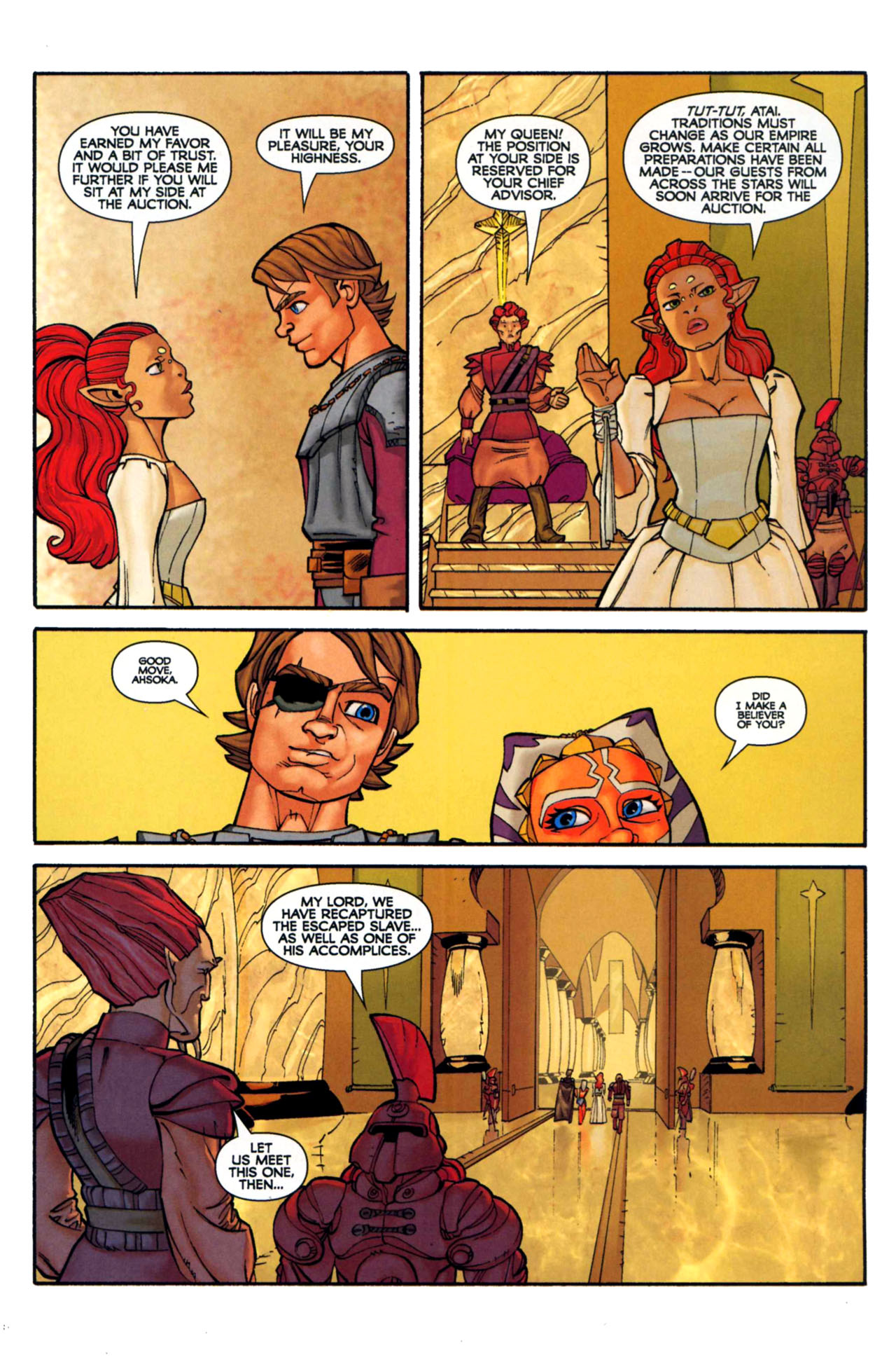 Hledání pokračuje! Invaze droidí armády hraběte Dooku stojí za záhadným zmizením togrutských obyvatel Kirosu. Rytíři Jedi Anakin, Obi-Wan a padawanka Ahsoka jsou na stopě ztracené populace této planey. Stopy vedou k zygerrianským otrokářům. Jediové vysledovali frakci rudovlasých padouchů na černý trh, v poli trosek známém jako Shi'karská úžina. Zamýšleje infiltrovat aukci a Togruty tak zachránit, řídí Jediové otrokářské plavidlo Ruka osudu do nepřátelského území...